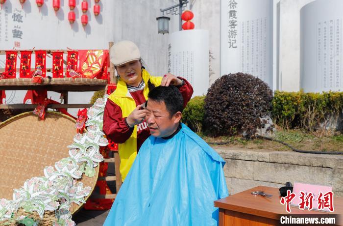 中新网湖州3月1日电(胡丰盛 车建民)剃龙头、看龙舞、吃龙食、坐花船……3月1日,正值农历“二月二龙抬头”,在浙江省湖州市吴兴区八里店镇潞村,春日活动轮番上阵。来自四面八方的游客汇聚到这里,体验了一把江南水乡的传统节日风情。