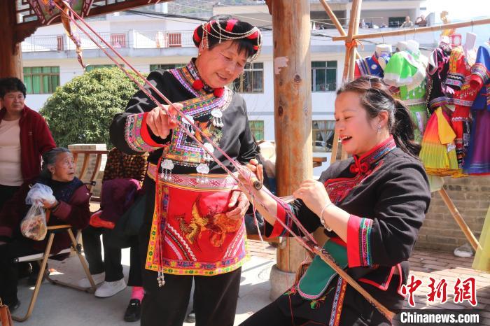 村道两旁,畲族老人演示着织裙带、编斗笠、扎蓑衣等传统技艺,手指翻飞间,一件件手工艺品渐成雏形;年轻一代通过直播镜头向网友讲解工艺背后的文化内涵。游客们穿梭其中,或参观或打卡,沉浸式体验畲族同胞的日常生活,共叙民族情谊。
