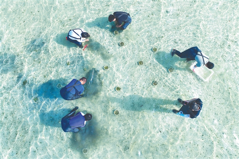 今年3月1日是第三个世界海草日。2月28日,海草床生态保护与修复研讨会在陵水黎族自治县举行。会后,来自管理部门、科研机构和社会公益组织等单位的专家学者来到陵水新村港种植卵叶喜盐草。