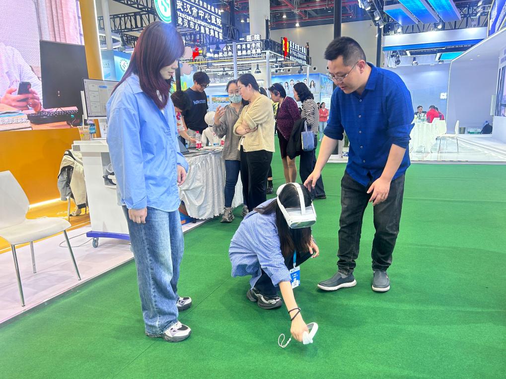 4月8日,观众在智慧医疗展区体验VR心理评估系统。新华社记者 熊翔鹤 摄