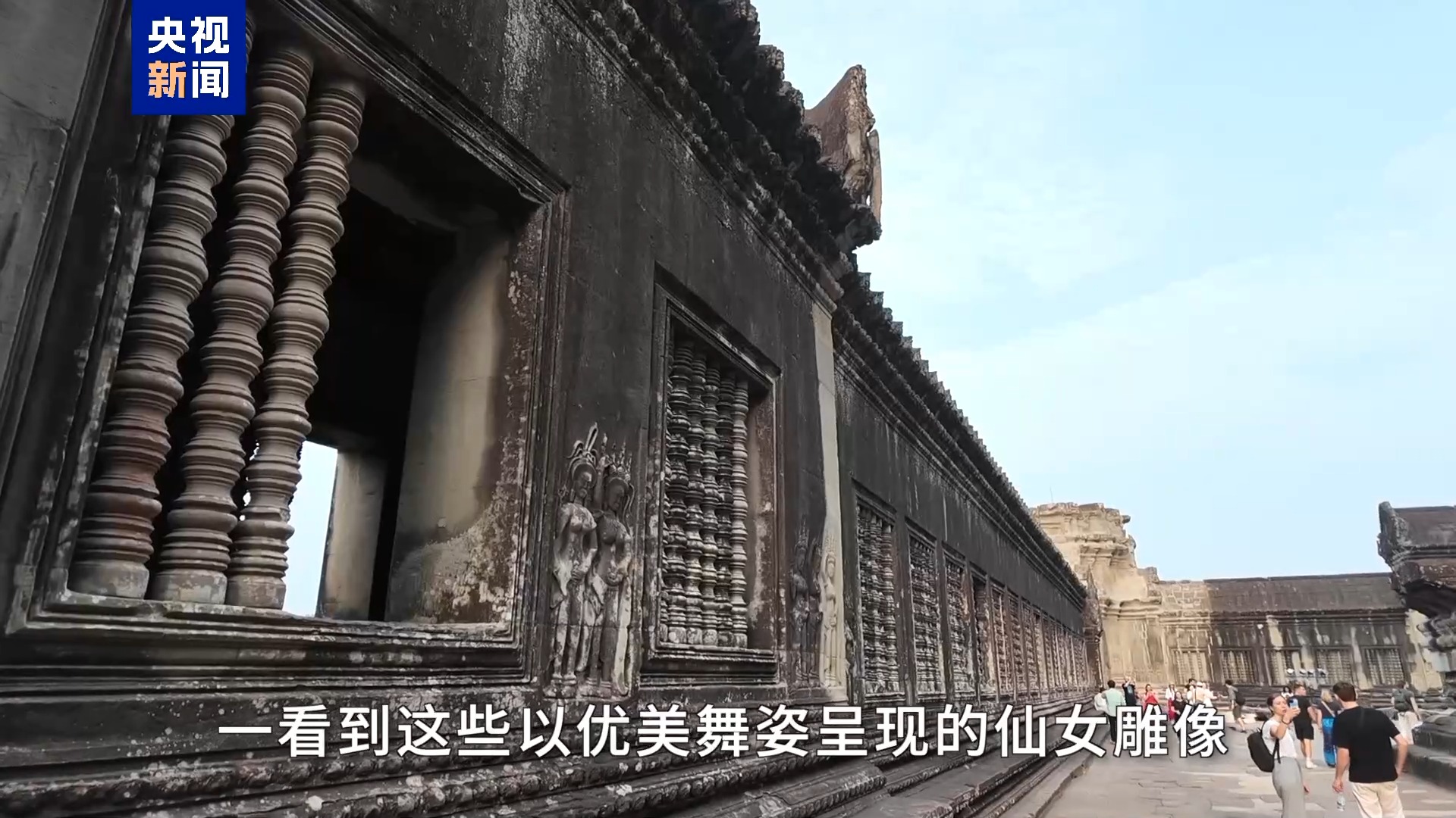 总台记者 杨探骊:在吴哥窟当中,我一看到呈现着优美舞姿的仙女雕像就忍不住驻足观赏,这些仙女是柬埔寨文化美的象征。