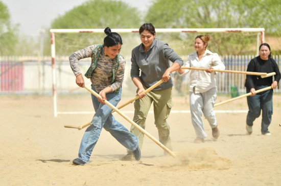 对习惯了在沙海胡杨间放牧、采收大芸的阿依古丽和队友们来说,玩麦热球是一种新的休闲方式。