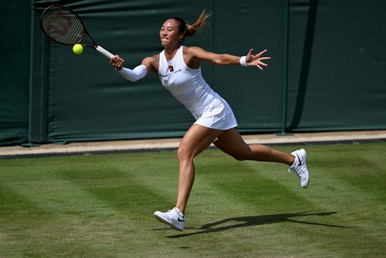 7月1日,郑钦文在英国伦敦举行的2025温布尔登网球公开赛女子单打首轮比赛回球,当天郑钦文1比2不敌捷克选手西尼亚科娃,无缘晋级。新华社记者 李颖 摄