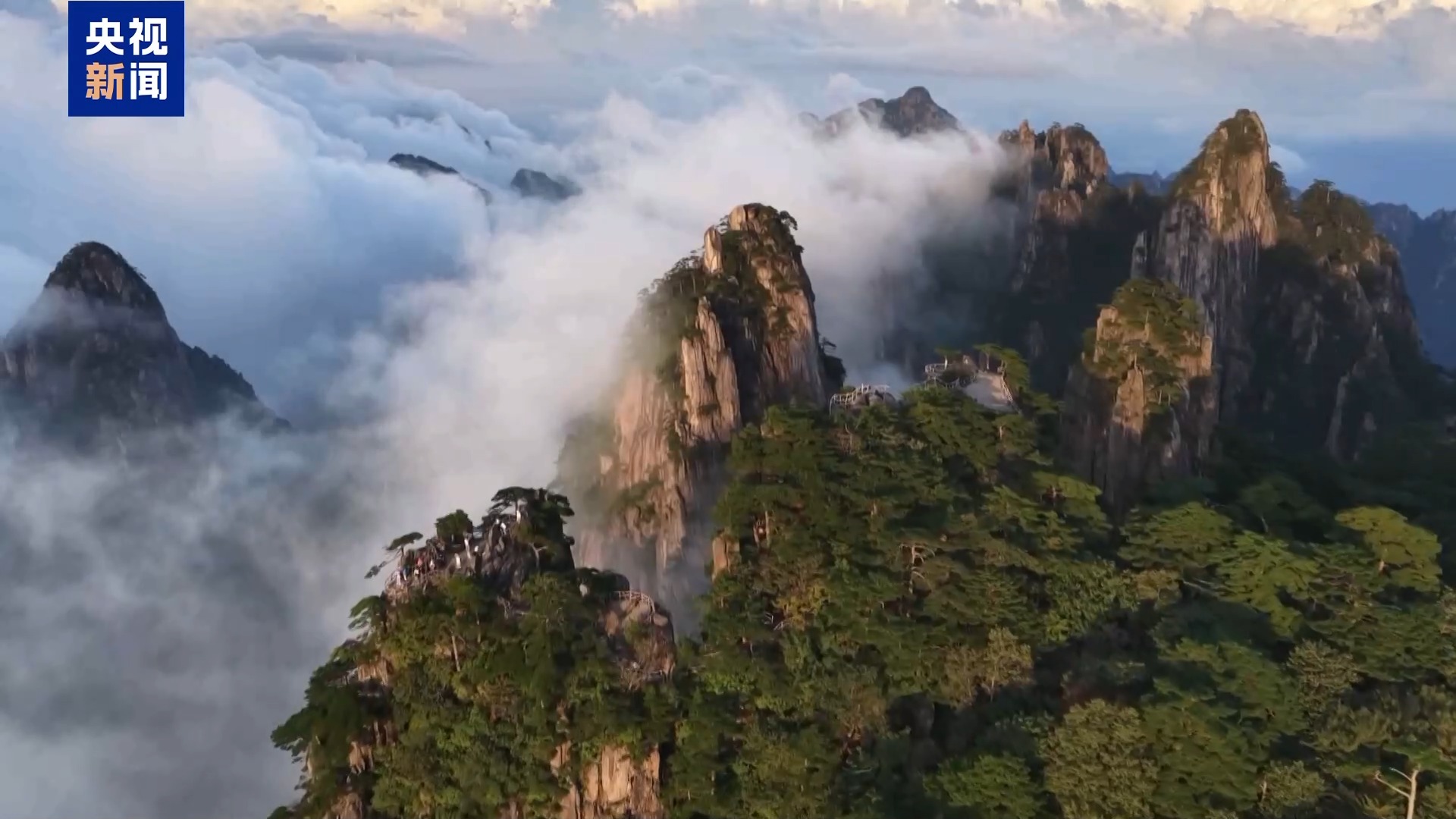 黄山素有“中国第一奇山”之誉,以“奇松、怪石、云海、温泉、冬雪”这五绝著称。山间云海在霞光的照射下变幻着色彩和姿态,缓缓流动,勾勒出千峰万壑的轮廓。