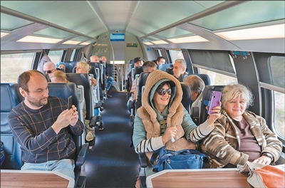 在匈塞铁路的高铁列车上,乘客正在拍摄。 刘瑜欣摄
