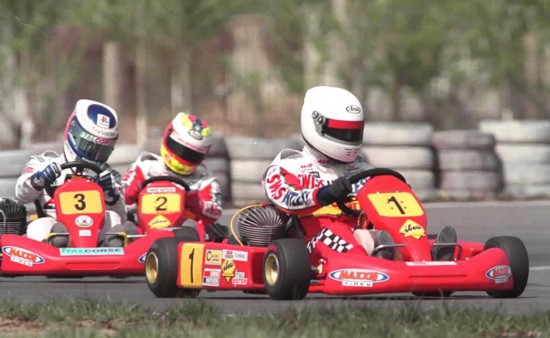 资料图:2000年4月30日,程丛夫(1号车)在2000年全国卡丁车锦标赛首站比赛中。最终他获得国际A组冠军。新华社记者 袁满 摄