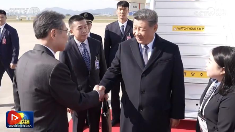 当地时间10月30日上午,国家主席习近平乘专机抵达韩国,应大韩民国总统李在明邀请,出席亚太经合组织第三十二次领导人非正式会议并对韩国进行国事访问。
