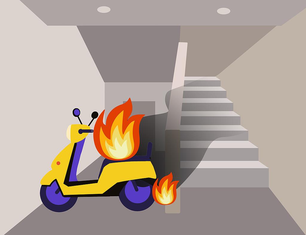 - 电动自行车停放时,千万不能进楼入户,特别是不能在安全出口、疏散通道这些地方进行停放,一旦发生火灾,会严重影响人员疏散。