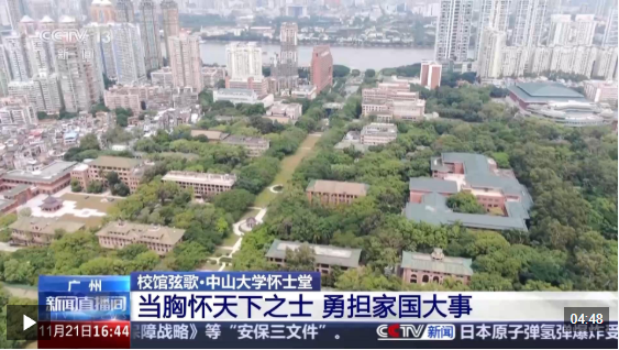 总台央视记者 李晶晶:站在中大的这片大草坪上,历史仿佛在眼前缓缓展开。我身后的怀士堂,它最初起源于一位捐建者的名字,但孙中山先生在这里的一次演讲为它注入了灵魂,让“怀士”从此意味着“胸怀天下”之士。