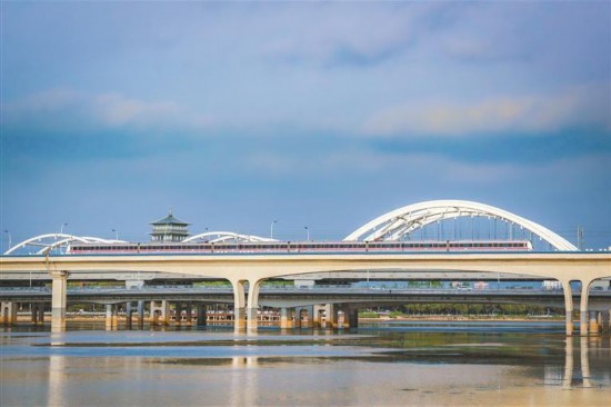 图为西安地铁3号线列车快速驶过广运大桥(2024年5月14日摄,资料照片)。 受访单位供图