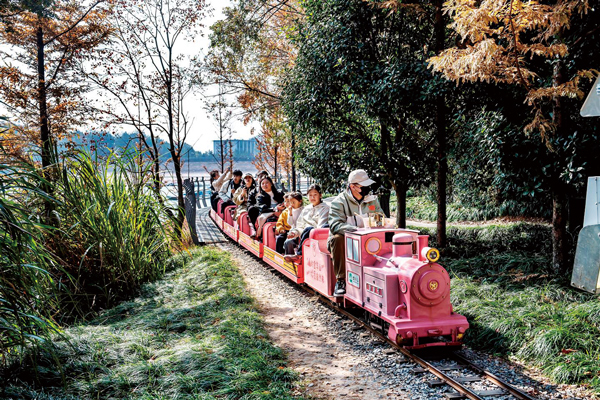 11月22日,金华山双龙旅游风景区鹿女湖畔迎来好多放秋假的学生,他们和家长一起徒步、露营。这里清澈的水面映衬着彩色水杉,湖边分布着鲜花、草坪、景观建筑,美不胜收。11月21日至25日中小学生首个秋假期间,层林尽染的自然景致与底蕴深厚的人文场景相映成趣,金华各地景区推出各色秋假游项目,从自然风光到文化体验,从户外探险到科普研学,满足不同亲子家庭的需求。(傅俊)