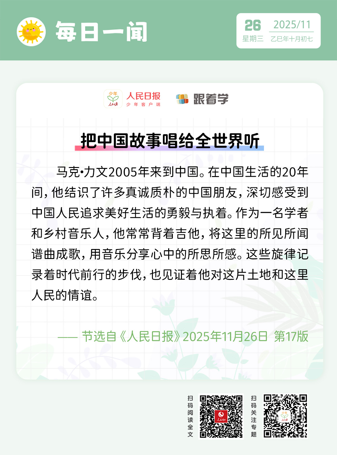 每日一闻丨把中国故事唱给全世界听