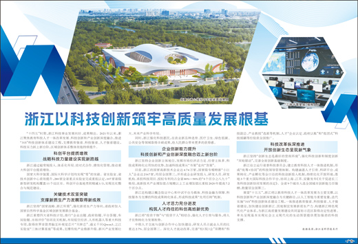 “十四五”时期,浙江科技事业发展向好、成果频出。2021年以来,浙江聚焦教育科技人才一体改革发展、科技创新和产业创新深度融合,推进“315”科技创新体系建设工程,支撑教育强省、科技强省、人才强省建设,科技实力跃上新台阶,区域创新体系整体效能持续提升。