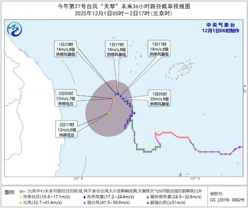天琴将在南海回旋少动。今年第27号台风“天琴”(热带风暴级)目前在南海中西部海面回旋少动,强度逐渐减弱中。预计2日白天它将向西南方向缓慢移动,2日夜间在南海西南部海域减弱消散。