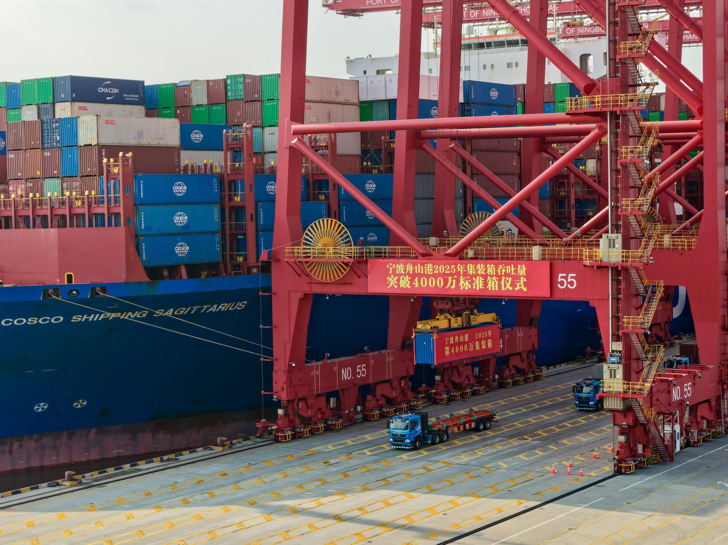 从量的积累到质的飞跃,宁波舟山港的增速写下了全球港口发展的“中国速度”:从1000万标箱到2000万标箱,用了7年;从2000万到3000万,耗时6年;而从3000万冲刺4000万,仅用短短4年。宁波舟山港由此成为全球前五大港口中近十年来增速最快、增量最大的港口。这一里程碑背后,是浙江推进世界一流强港建设的坚实步伐,更是中国外贸韧性的生动体现。