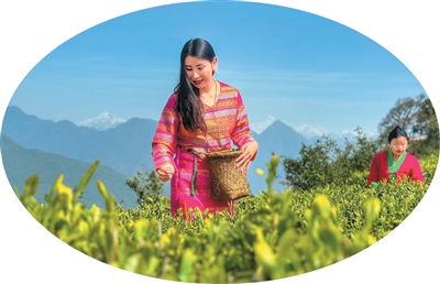德兴村东临雅鲁藏布江,海拔不到千米,气候温暖宜人,这里居住着100多户门巴族乡亲。进村的路在绿毯似的茶园中穿行,前两年,收到西藏朋友寄来的墨脱春茶,茶味浓郁,唇齿留香,实为佳茗;墨脱朋友说,从2012年起步的茶产业目前产值已过亿元,带动群众每户增收5千余元,全县建成高标准有机茶园近2万亩。
