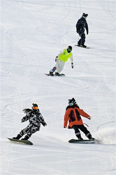 在牙克石凤凰山滑雪场,滑雪爱好者飞驰在雪道上。