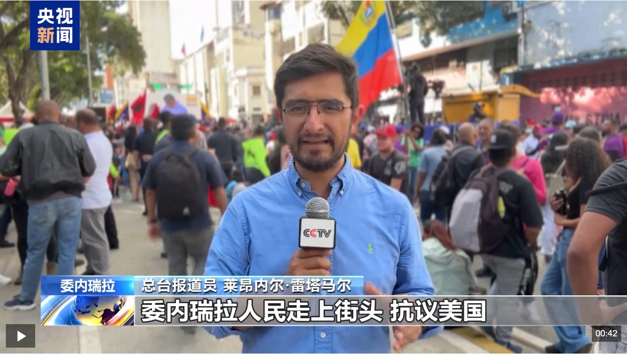 总台报道员 莱昂内尔·雷塔马尔:委内瑞拉人民走上街头、抗议美国,并要求释放总统尼古拉斯·马杜罗。愤怒与不满在接连的这些日子里非但没有减弱,反而不断增加。