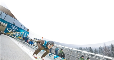 中国队运动员蔡雪桐在单板滑雪女子U型场地技巧资格赛中。 本报记者 王 亮摄
