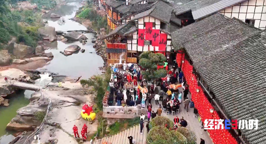 重庆江津的中山古镇,一条宴席从街头摆到街尾,这“千米长宴”已经延续了将近千年。每到春节前,这里都会提前上演最浓的年味。它如何从一个地方习俗,变成一张文旅名片,并带动古镇的“年味经济”?