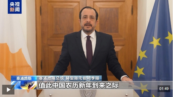塞浦路斯总统 赫里斯托祖利季斯:值此中国农历新年到来之际,我谨代表塞浦路斯共和国政府和人民,向中华人民共和国及其人民致以最热烈的节日问候。祝你们身体健康、繁荣昌盛、不断进步。