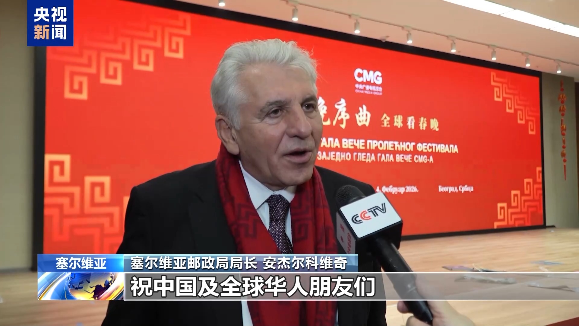 塞尔维亚邮政局局长 安杰尔科维奇:祝中国及全球华人朋友们新春快乐,万事如意。