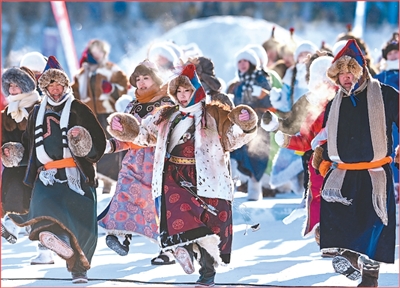 文化演出 演员在第二十一届内蒙古自治区冰雪那达慕开幕式上表演。 王 正摄(人民视觉) |