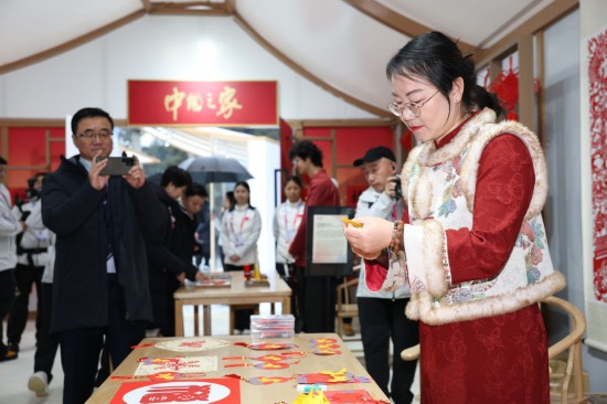 2月4日,非遗传承人在冬奥会“中国之家”展示剪纸。新华社记者 李京 摄