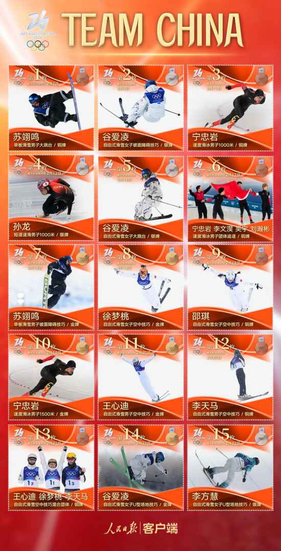 两周多时间,126名中国队选手参加了7个大项、15个分项、91个小项的角逐,不仅创下中国冬奥会境外参赛项目最多、运动员规模最大的新纪录,更以5金4银6铜共15枚奖牌,刷新冬奥会境外参赛历史最好成绩。