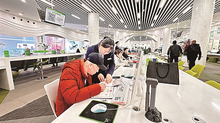 大连自助网办区工作人员为群众现场指导道路运输许可证线上申请办理。大连新闻传媒集团供图