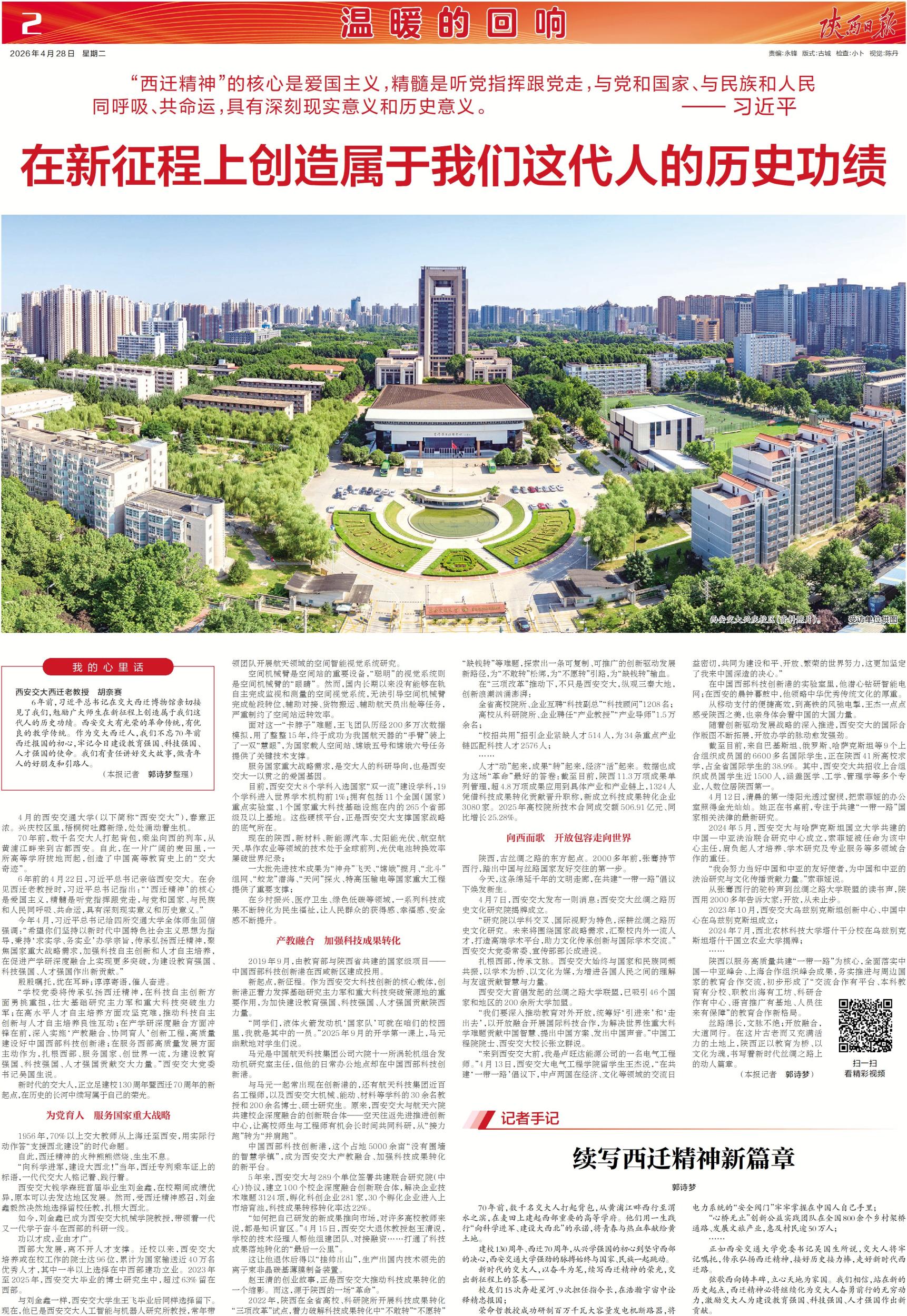 自此,西迁精神的火种熊熊燃烧、生生不息。