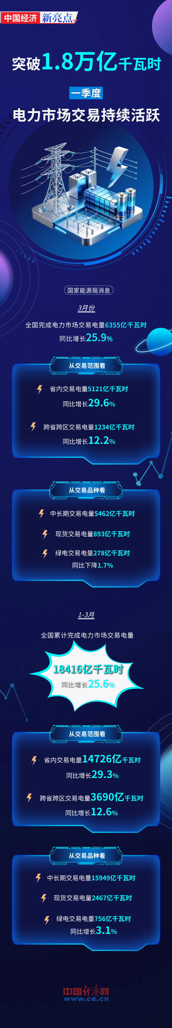 【图解】突破1.8万亿千瓦时!一季度电力市场交易持续活跃